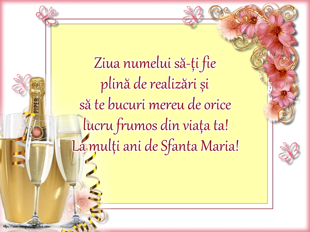 Sfanta Maria să te călăuzească mereu, să-ți dea un munte de sănătate, o mare de iubire și un ocean de fericire. Ne gândim cu toții la tine și îți urăm tot binele din lume.