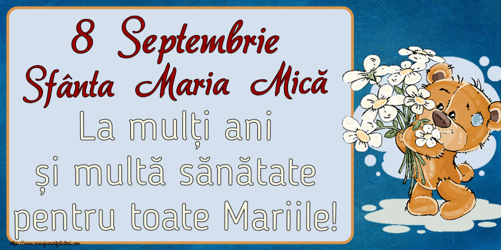 8 Septembrie Sfânta Maria Mică La mulți ani și multă sănătate pentru toate Mariile! ~ ursulet cu flori
