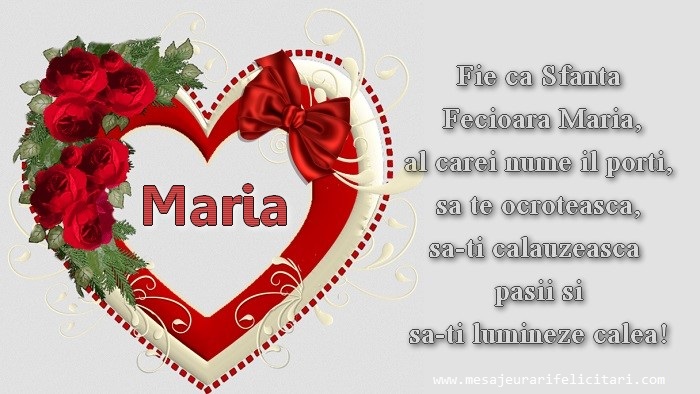 Fie ca Sfanta Fecioara Maria, al carei nume il porti, sa te ocroteasca, sa-ti calauzeasca pasii si sa-ti lumineze calea!
