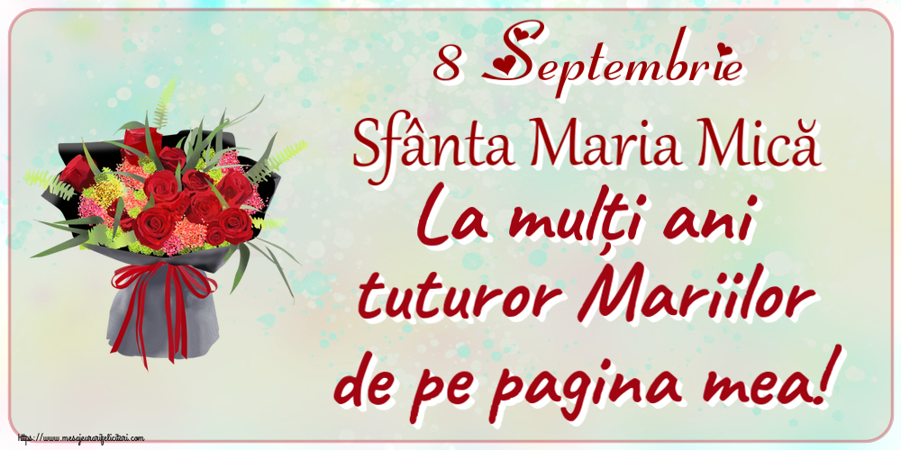 Va doresc o zi de Sfânta Maria cat mai frumoasa! La multi ani pentru sarbatoriti! Felicitari si imagini de Nasterea Maicii Domnului - Sfanta Maria Mica- 8 Septembrie.