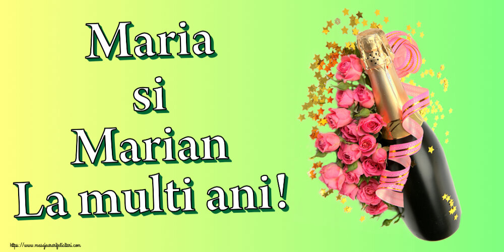 Felicitari de Sfanta Maria Mica - Maria si Marian La multi ani! ~ aranjament cu șampanie și flori