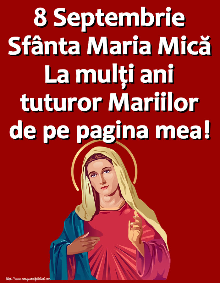 La mulți ani tuturor prietenilor din lista mea ce poartă numele Sfintei Fecioare Maria! Felicitari si imagini de Nasterea Maicii Domnului - Sfanta Maria Mica- 8 Septembrie.