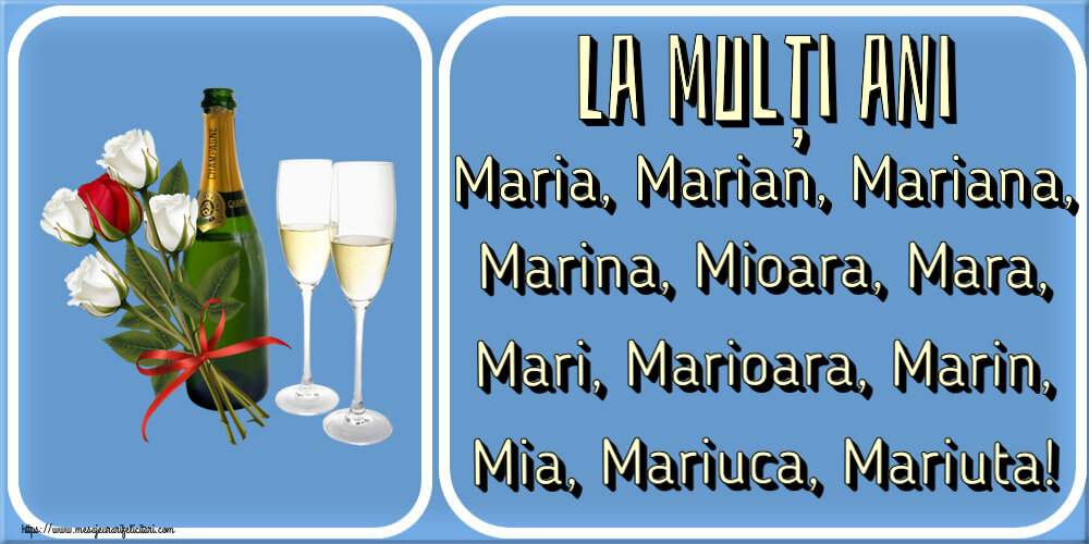 Felicitarea Anterioara Felicitarea Urmatoare Sfanta Maria Mica (564) Felicitari cu flori Felicitari cu sampanie