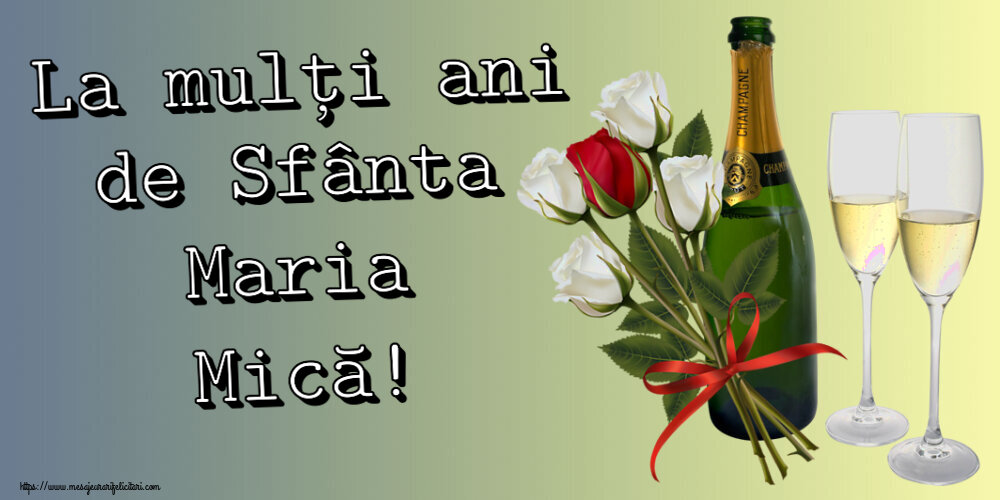 Felicitarea Anterioara Felicitarea Urmatoare Sfanta Maria Mica (564) Felicitari cu flori Felicitari cu sampanie