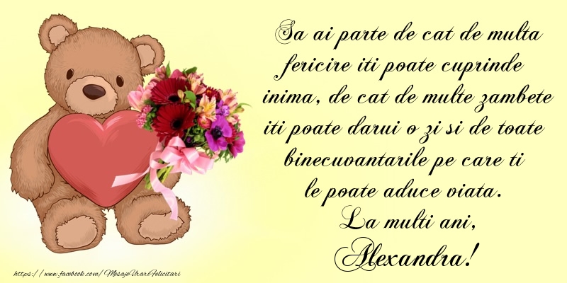 Felicitari pentru Alexandru, Alexandra, Alecu, Lexi, Lixandru, Lixandra, Lisandru, Lisandra, Sandru, Sandra, Alexandrin, Alexandrina, Sandrina, Sandu, Sanda, Sandel, Sanducu, Ducu, Dutu, Saşa, Alessandra!
