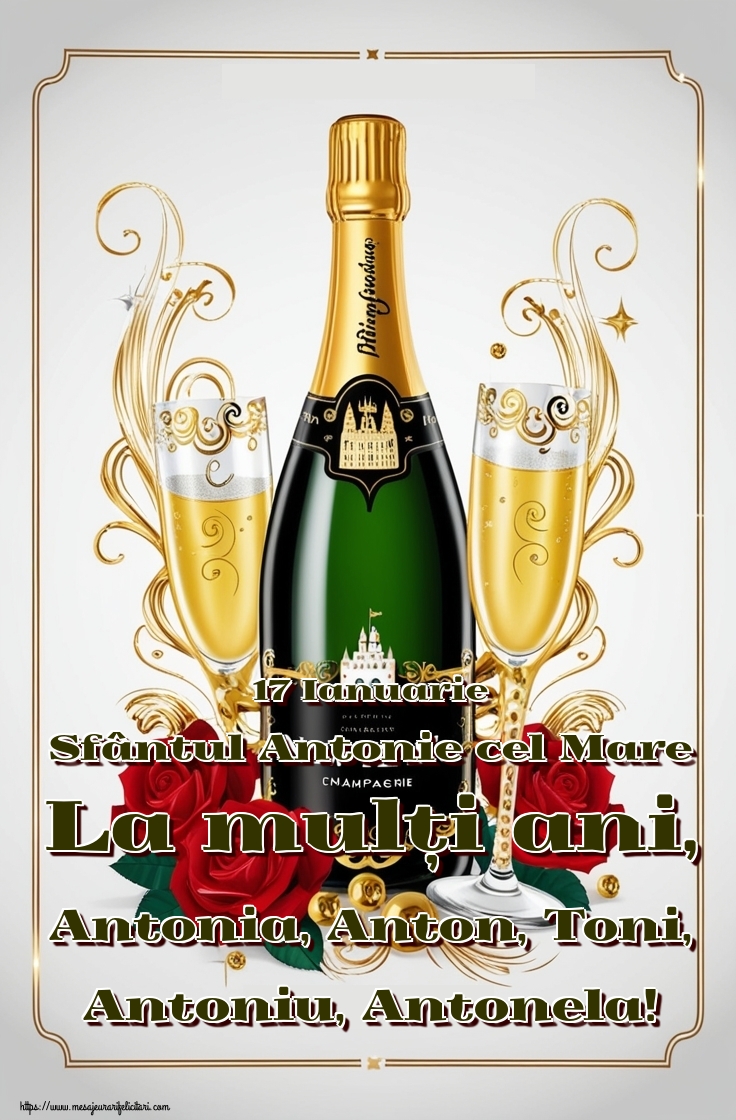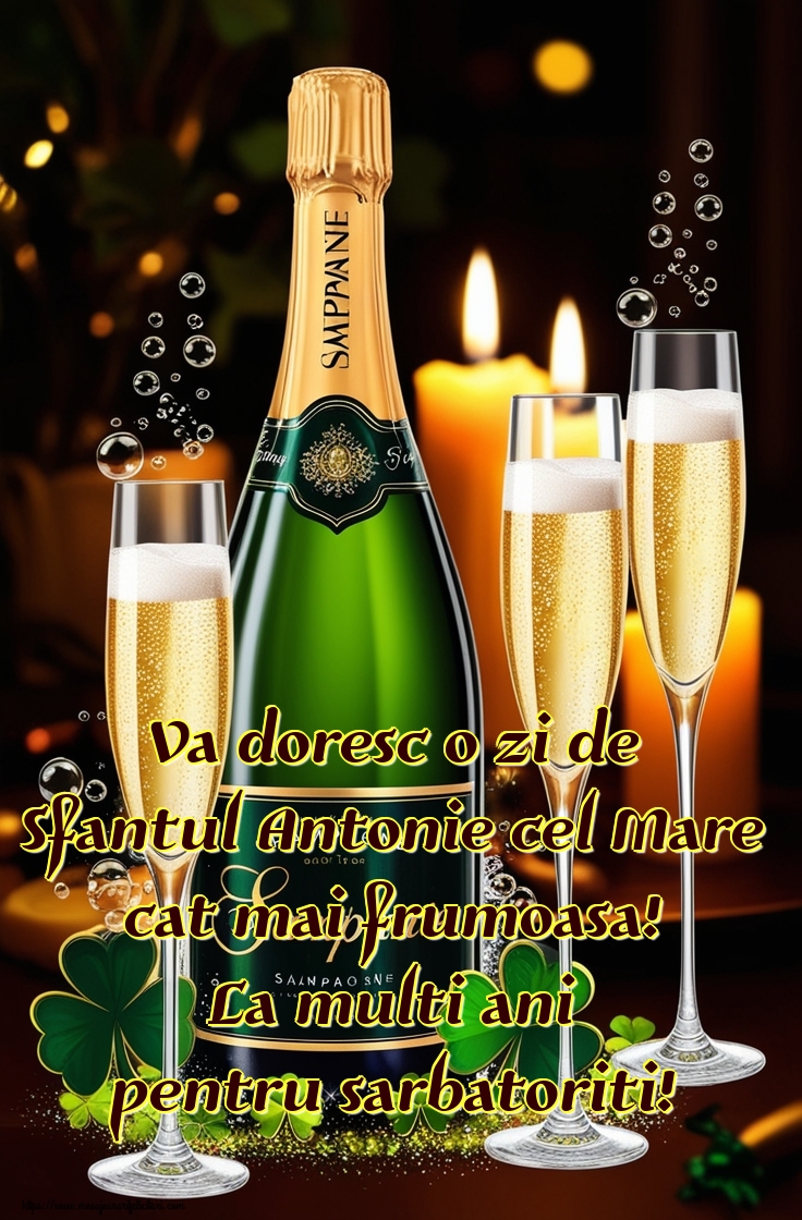 Sfantul Antonie cel Mare este praznuit de catre Biserica Ortodoxa in data de 17 Ianuarie in fiecare an. Trimite si tu un gand frumos intr-o felicitare tuturor care porta numele sfantului Antonie!