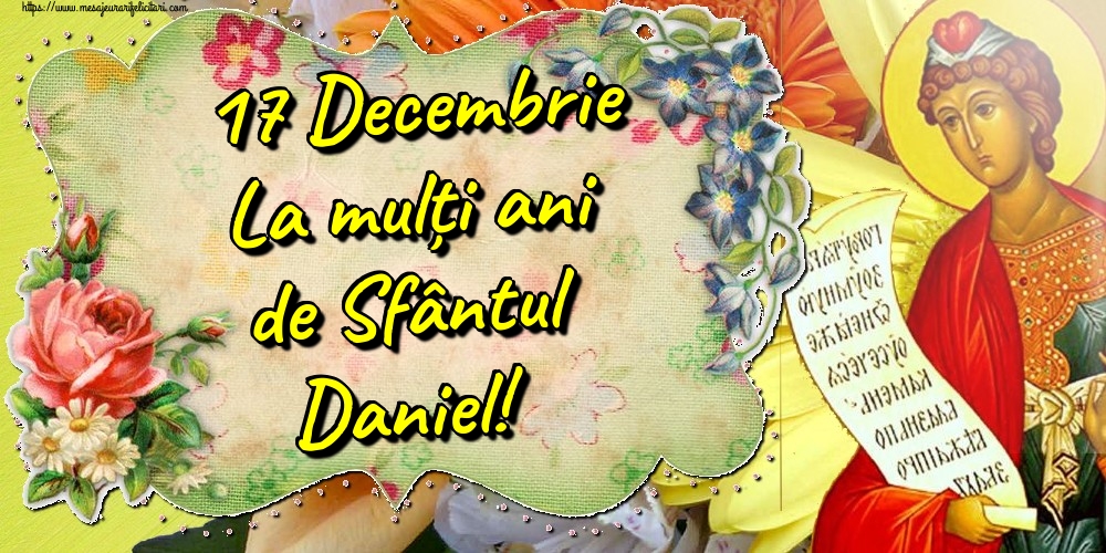 Sfantul Daniel este praznuit de catre Biserica Ortodoxa in data de 17 decembrie in fiecare an. Trimite si tu un gand frumos intr-o felicitare tuturor care porta numele sfantului Daniel!