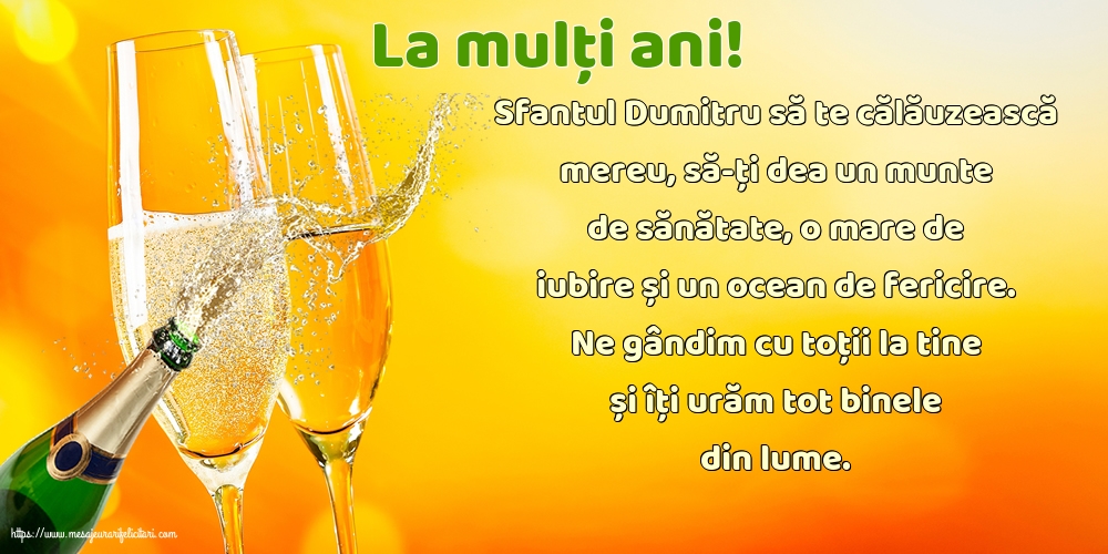 Sfantul Dumitru să te călăuzească mereu, să-ți dea un munte de sănătate, o mare de iubire și un ocean de fericire. Ne gândim cu toții la tine și îți urăm tot binele din lume.