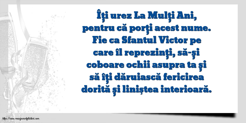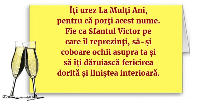 Felicitarea Anterioara Felicitarea Urmatoare Sfantul Victor (268) Felicitari cu mesaje Felicitari cu sampanie
