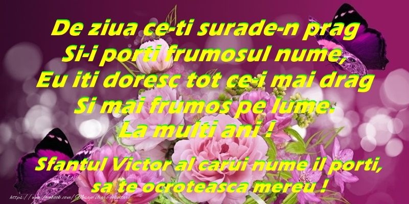 Aici gasiti felicitari de sfantul Victor, felicitari pentru cei care poarte numele Sfantului Victor, felicitari pentru Victor si Victoria