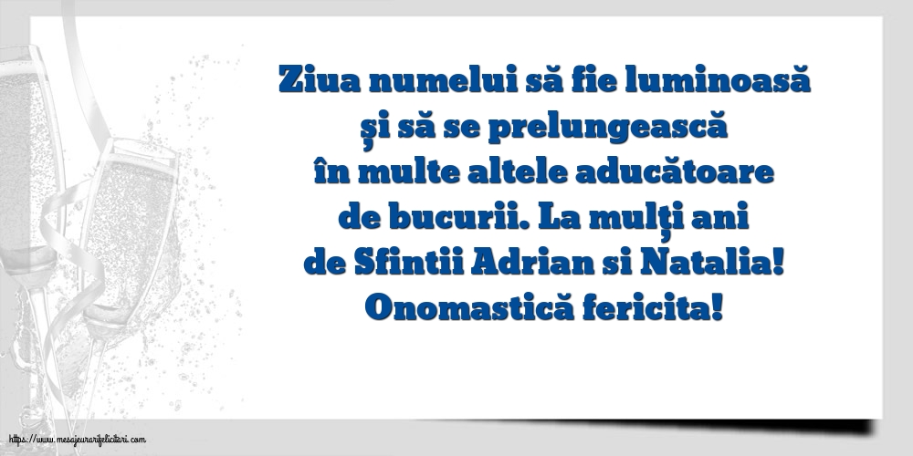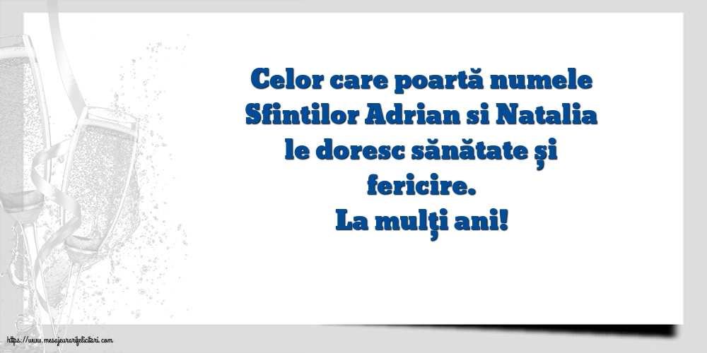 Onomastică fericita! - La mulți ani de Sfintii Adrian si Natalia!