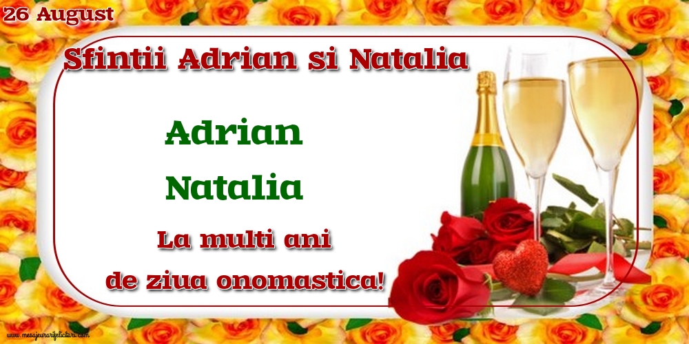 26 August Sfintii Adrian si Natalia La multi ani de ziua numelui!