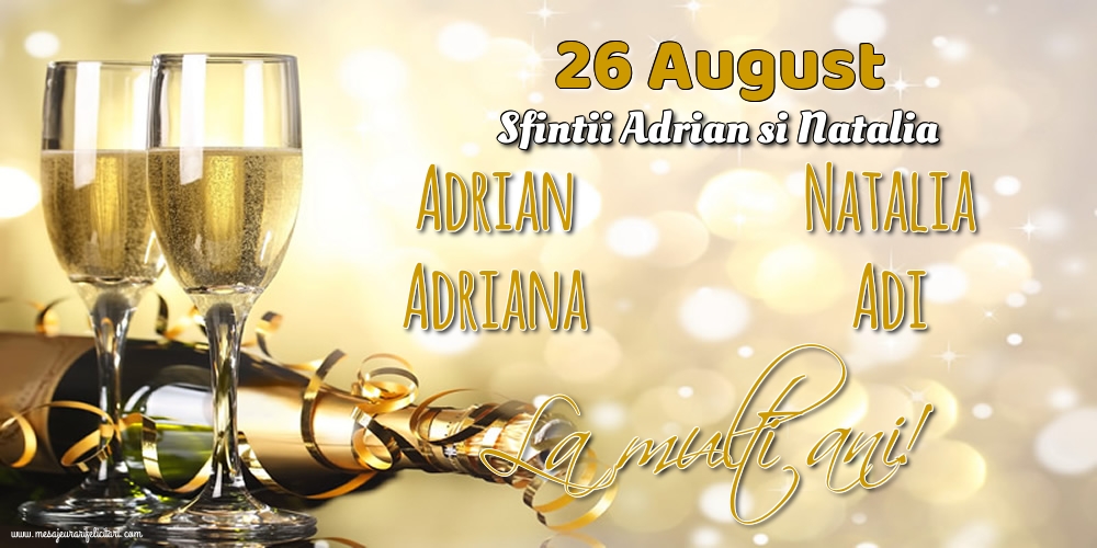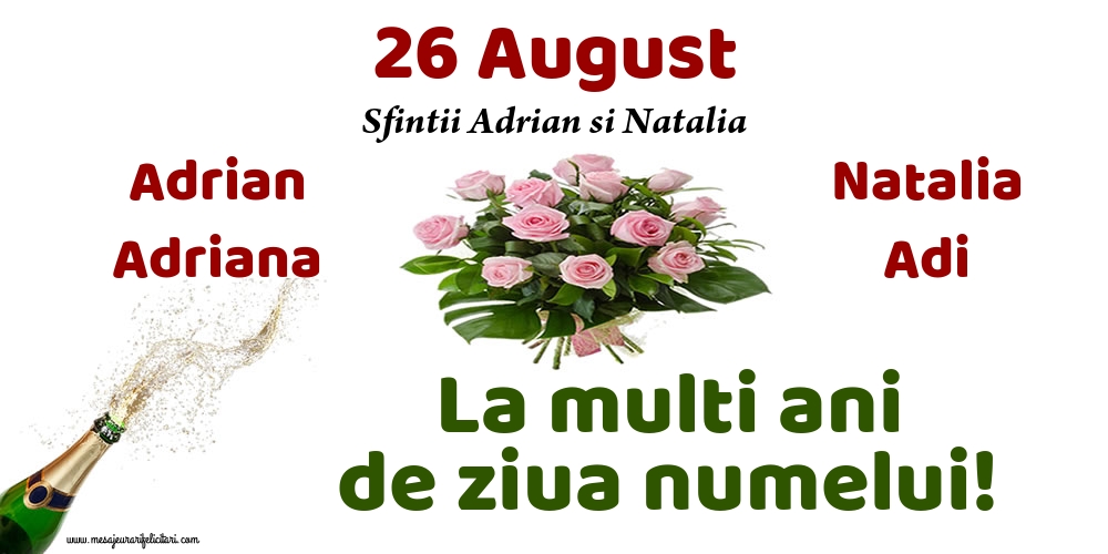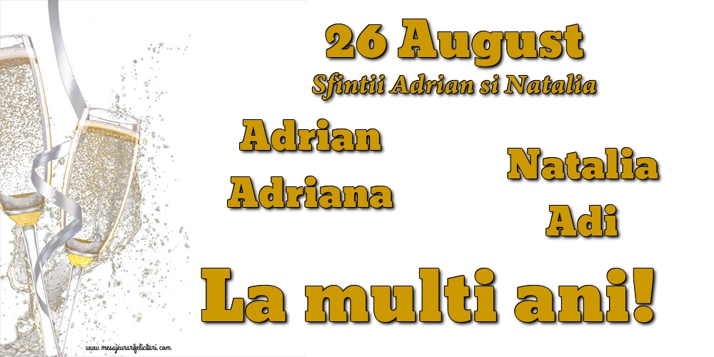 Trimite si tu un gand frumos intr-o felicitare tuturor care porta numele Sfintilor Adrian si Natalia!