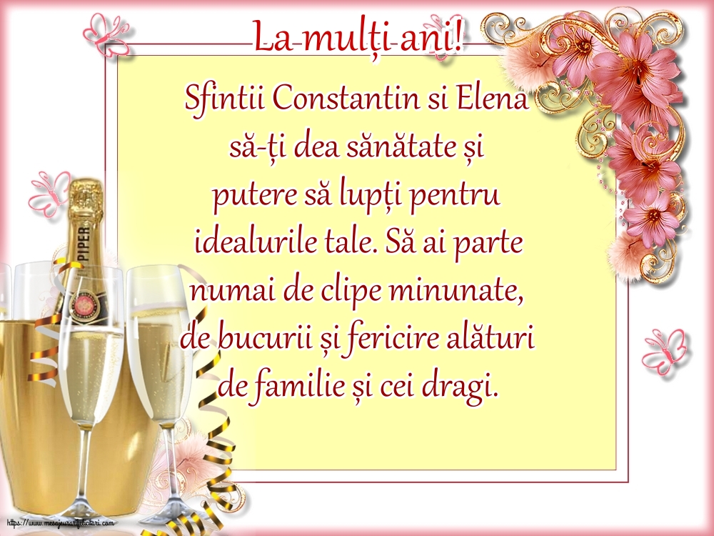 De Sfintii Constantin si Elena, zi Sfântă, să se răsfrângă asupra ta bunătatea şi dragostea ce izvorăsc dintr-o inimă mare și iubitoare.