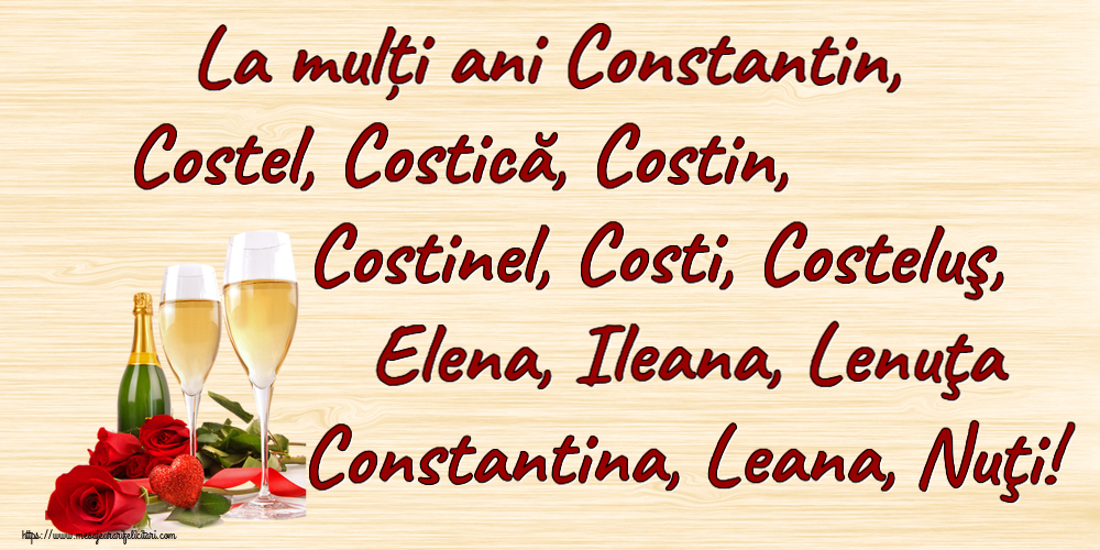 Ortodocsii si catolicii ii serbeaza pe 21 mai pe Sfintii Imparati Constantin si Elena, datorita carora crestinismul a devenit religie permisa, jertfele sangeroase au fost interzise si duminica a fost stabilita zi de odihna in Imperiul Roman. La multi ani de Sfintii Constantin si Elena pentru Constantin, Costel, Costica Costin, Costinel, Costi, Elena, Ileana, Lenuta, Constanta, Constantina, Leana, Nuti!