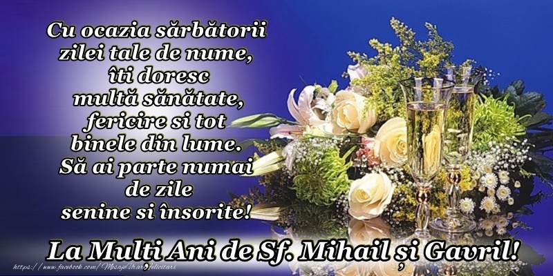 Felicitarea Anterioara Felicitarea Urmatoare Sfintii Mihail si Gavriil (586) Felicitari cu flori Felicitari cu sampanie