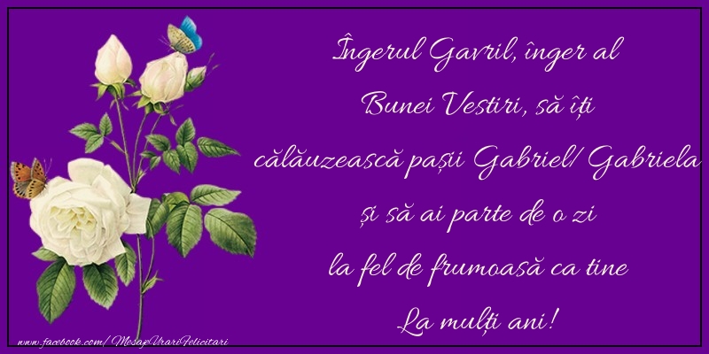 Îngerul Gavril, înger al Bunei Vestiri, să îţi călăuzească paşii Gabriel/Gabriela şi să ai parte de o zi la fel de frumoasă ca tine La mulţi ani!