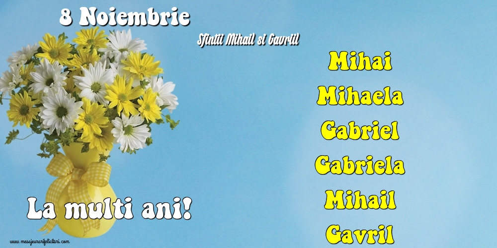 8 Noiembrie - Sfintii Mihail si Gavriil - Mihai Mihaela Gabriel Gabriela Mihail Gavril - La multi ani!
