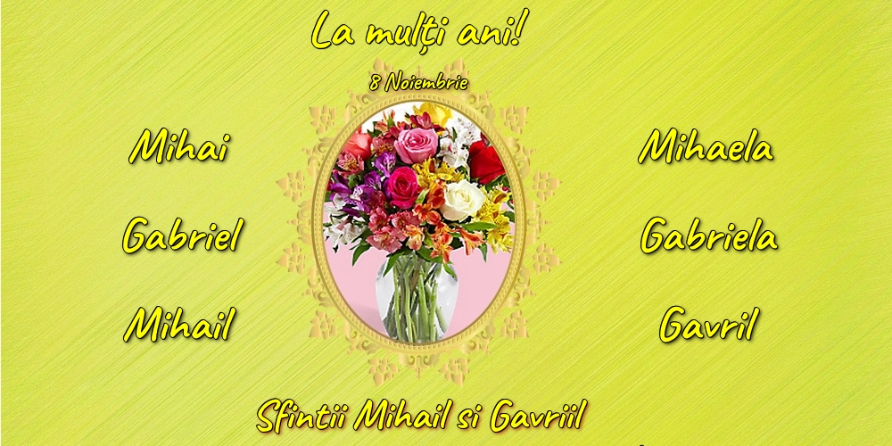 8 Noiembrie - Sfintii Mihail si Gavriil - Mihai Mihaela Gabriel Gabriela - La mulți ani! Multă sănătate și fericire!