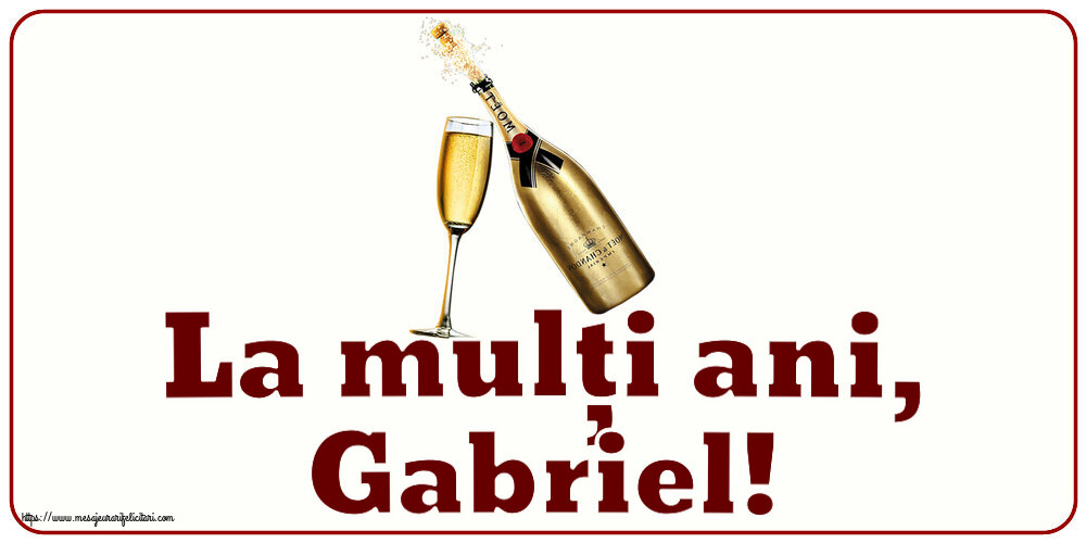 La mulți ani, Gabriel! In fiecare an, pe data de 8 noiembrie, Biserica cinsteste Soborul Sfintilor Mihail si Gavriil si a tuturor Puterilor ceresti celor fara de trupuri. Trimite si tu un gand frumos intr-o felicitare tuturor care porta numele Sfintii Mihail si Gavril! ~ șampanie cu pahar