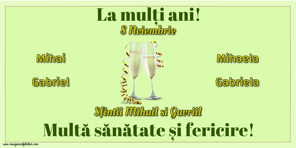 Felicitarea Anterioara Felicitarea Urmatoare Sfintii Mihail si Gavriil (586) Felicitari cu sampanie