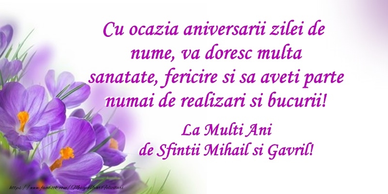 Cu ocaza sarbatorii zilei tale de nume, va doresc multa sanatate, fericire si sa aveti parte numai de realizari si bucurii! La multi ani de Sfintii Mihail si Gavril!