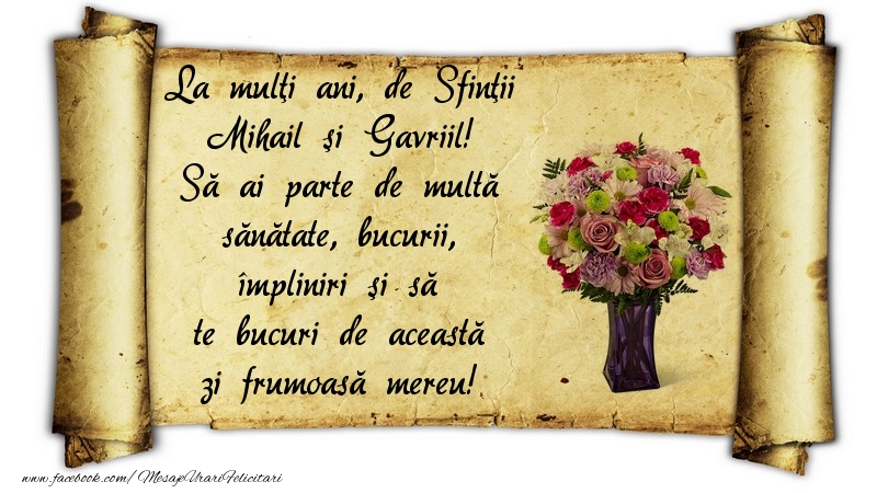 Felicitarea Anterioara Felicitarea Urmatoare Sfintii Mihail si Gavriil (586) Felicitari cu flori Felicitari cu trandafiri