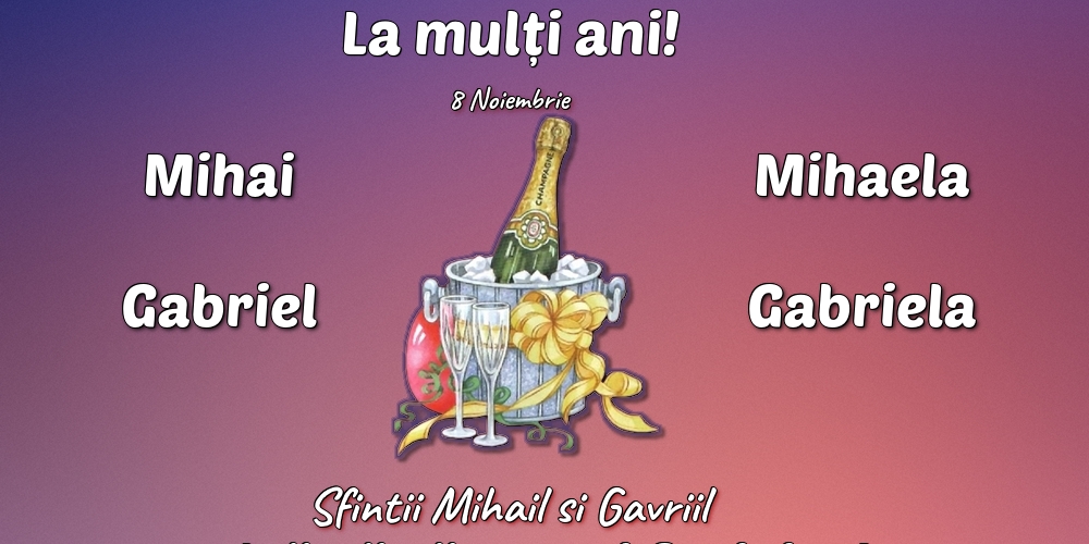 Felicitarea Anterioara Felicitarea Urmatoare Sfintii Mihail si Gavriil (586) Felicitari cu sampanie
