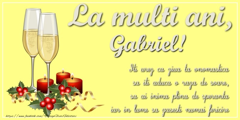 In fiecare an, pe data de 8 noiembrie, Biserica cinsteste Soborul Sfintilor Mihail si Gavriil si a tuturor Puterilor ceresti celor fara de trupuri. Trimite si tu un gand frumos intr-o felicitare tuturor care porta numele Sfintii Mihail si Gavril!