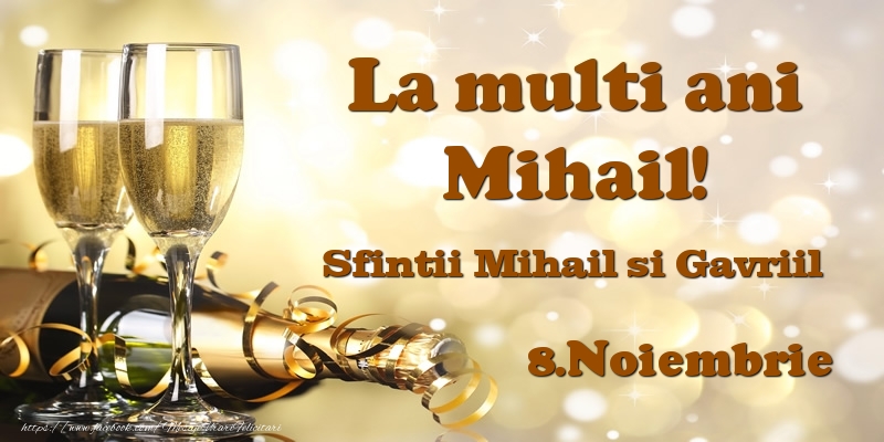 In fiecare an, pe data de 8 noiembrie, Biserica cinsteste Soborul Sfintilor Mihail si Gavriil si a tuturor Puterilor ceresti celor fara de trupuri. Trimite si tu un gand frumos intr-o felicitare tuturor care porta numele Sfintii Mihail si Gavril! - Cele mai apreciate felicitari de Sfintii Mihail si Gavril: 8 Noiembrie - Pagina 11