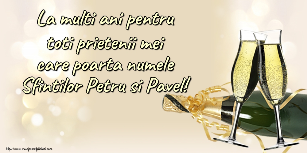 Felicitarea Anterioara Felicitarea Urmatoare Sfintii Petru si Pavel (561) Felicitari cu sampanie