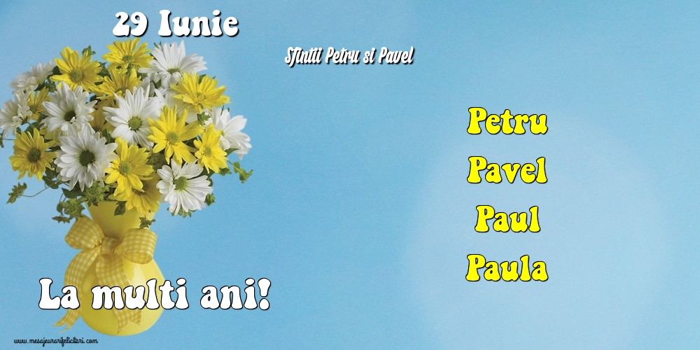 29 Iunie - Sfintii Petru si Pavel - Petru Pavel Paul Paula - La multi ani!