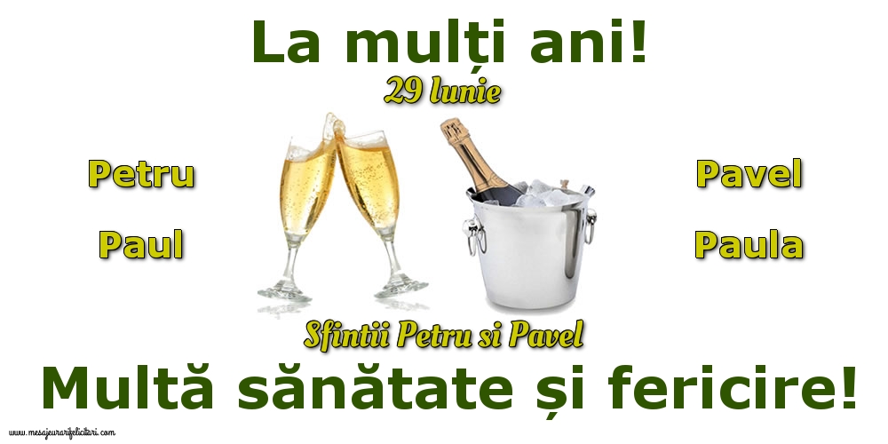 29 Iunie - Sfintii Petru si Pavel - Petru Pavel Paul Paula - La mulți ani! Multă sănătate și fericire!