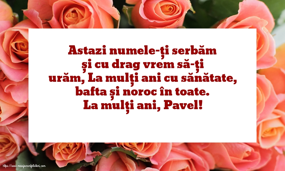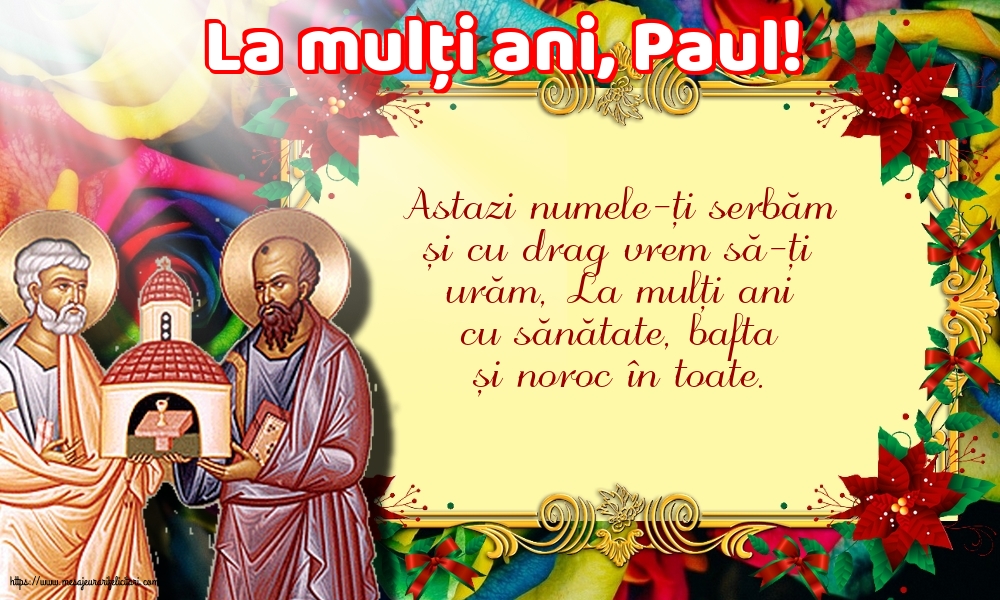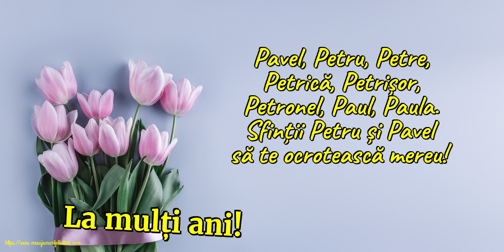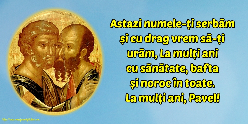 Mesaje si felicitari pentru Pavel, Petru, Petre, Petrică, Petrişor, Petronel, Paul, Paula, Petronela, Petruţa, Petriţa, Paulina, Paulica, Pătra, Pauliana cu ocazia sarbatorii numelui.