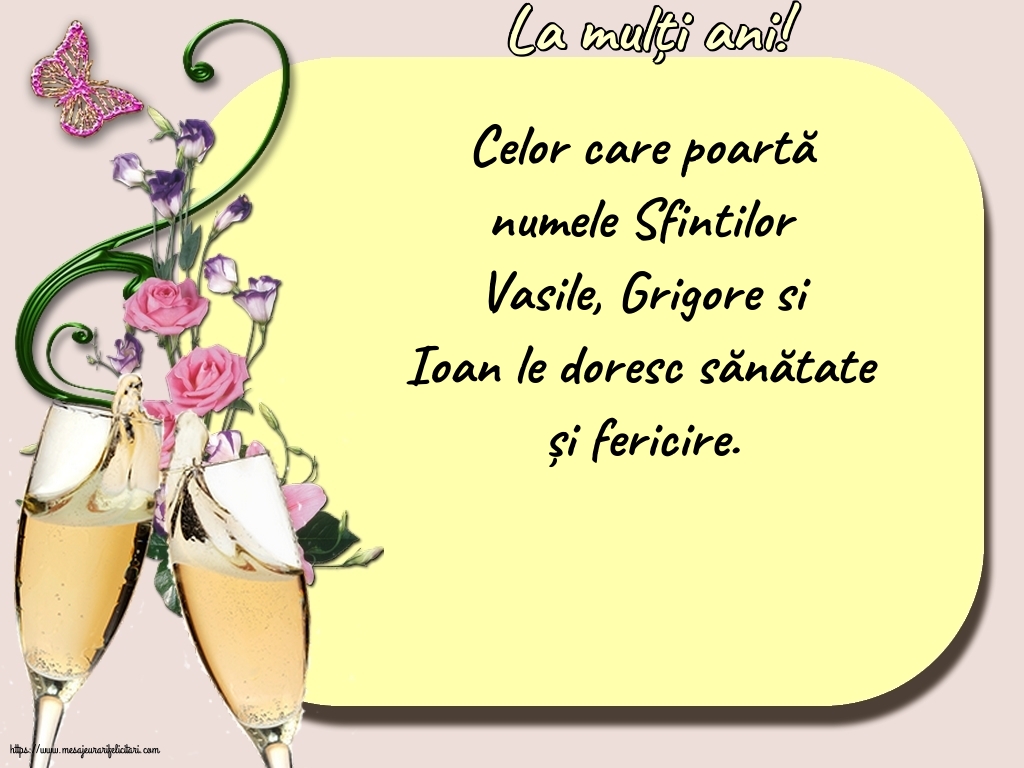 Felicitarea Anterioara Felicitarea Urmatoare Sfintii Vasile, Grigore si Ioan (509) Felicitari cu mesaje