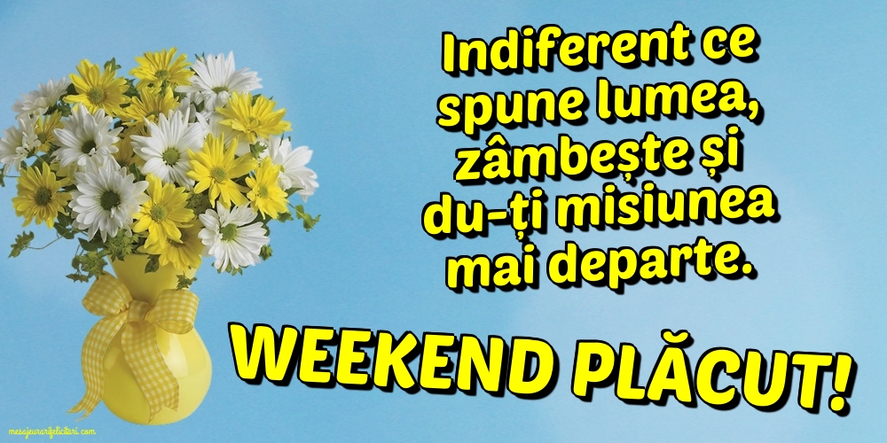 Indiferent ce spune lumea, zâmbește și du-ți misiunea mai departe. Weekend plăcut!