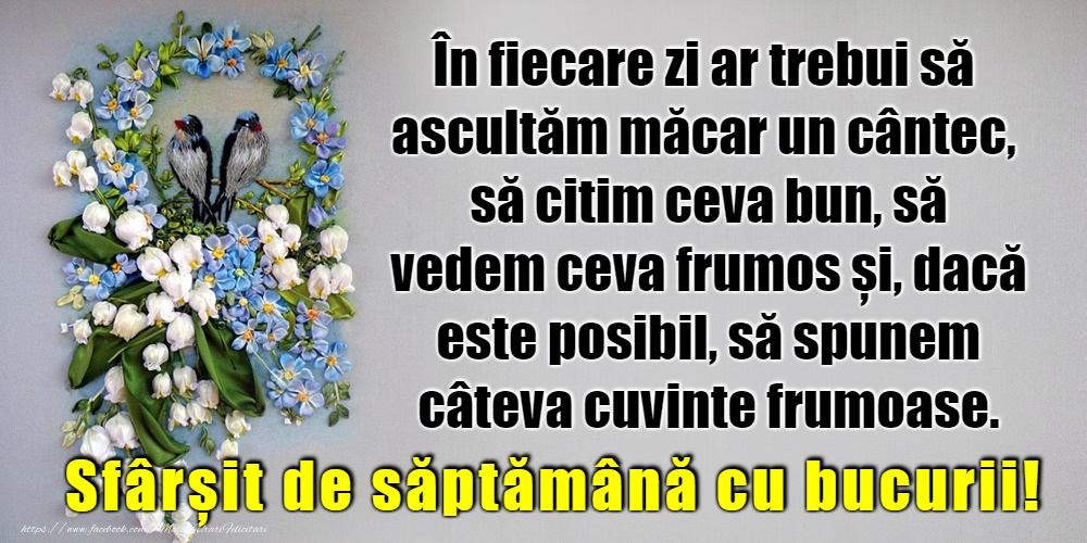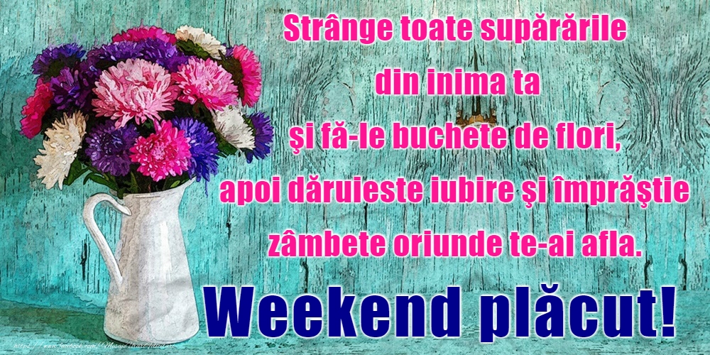 Felicitari de weekend, felicitari weekend placut, felicitari de sfarsit de saptamana. Weekend placut si linistit alaturi de cei dragi!