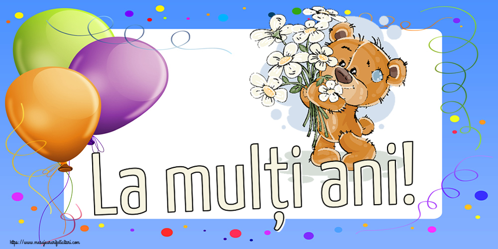Descarca felicitarea - Felicitari de zi de nastere - La mulți ani! ~ ursulet cu flori - mesajeurarifelicitari.com
