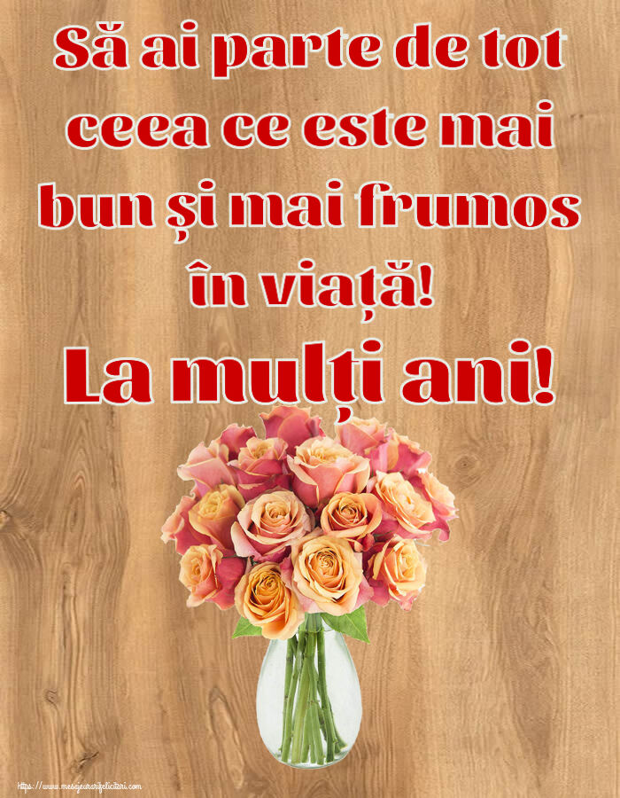 Să ai parte de tot ceea ce este mai bun și mai frumos în viață! La mulți ani! ~ vază cu trandafiri