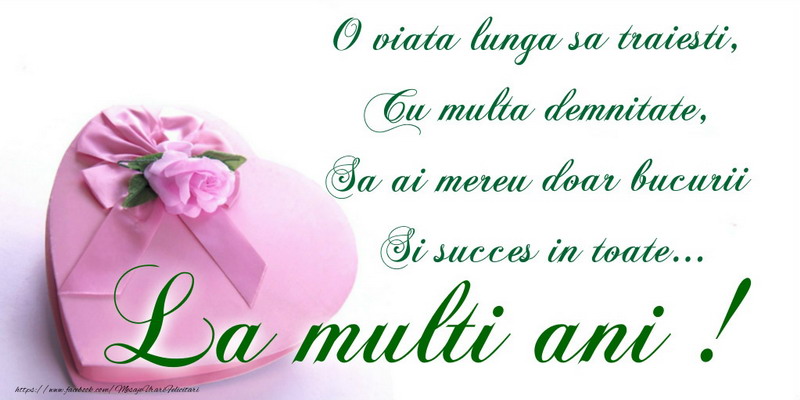 O viata lunga sa traiesti cu multa demnitate, sa ai mereu doar bucurii si succes in toate ... La multi ani!