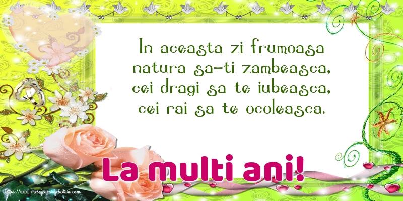 În aceasta zi frumoasa natura să-ți zâmbească, cei dragi să te iubească, cei răi să te ocolească.