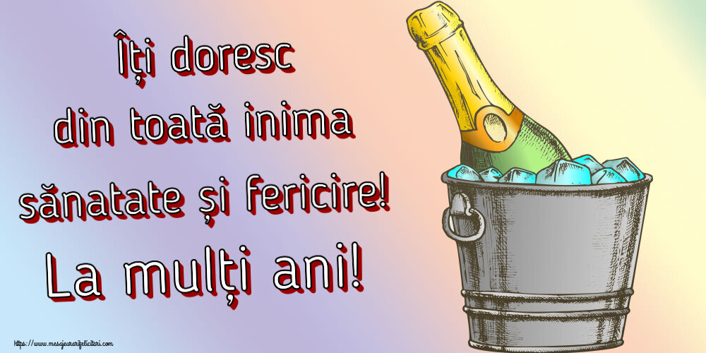 Îți doresc din toată inima sănatate și fericire! La mulți ani! ~ un desen cu șampanie în frapieră