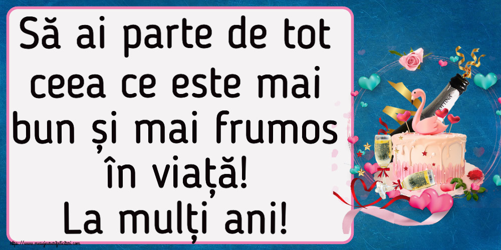 In aceasta zi frumoasa natura sa-ti zambeasca, cei dragi sa te iubeasca, cei rai sa te ocoleasca. La multi ani! Felicitari de zi de nastere, felicitari cu ziua de nastere.