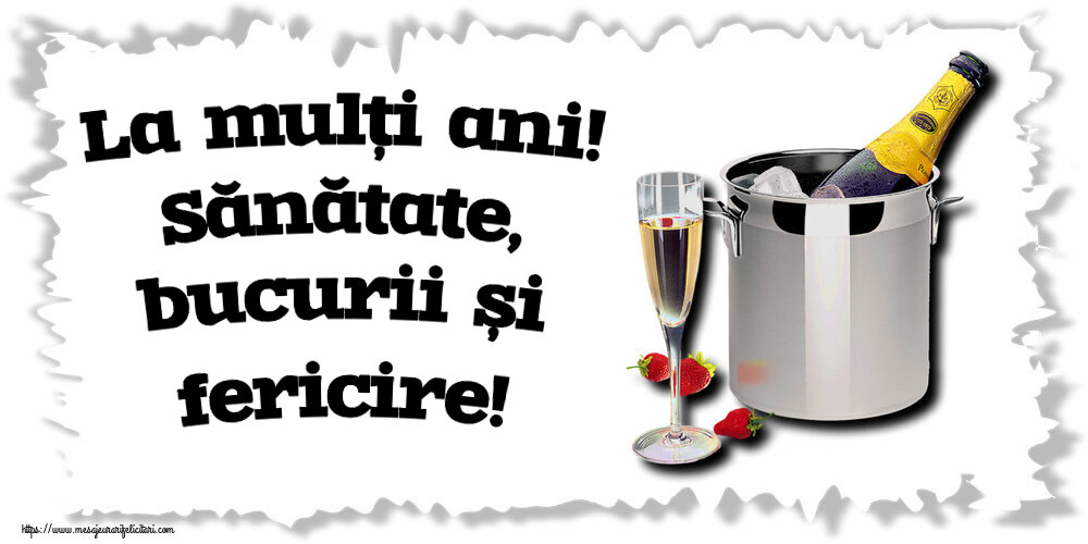 Felicitari de zi de nastere - La mulți ani! Multă sănătate și fericire! ~ șampanie cu pahar - mesajeurarifelicitari.com