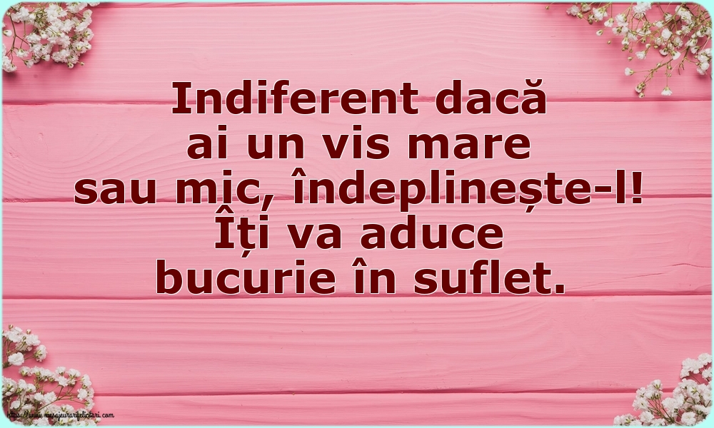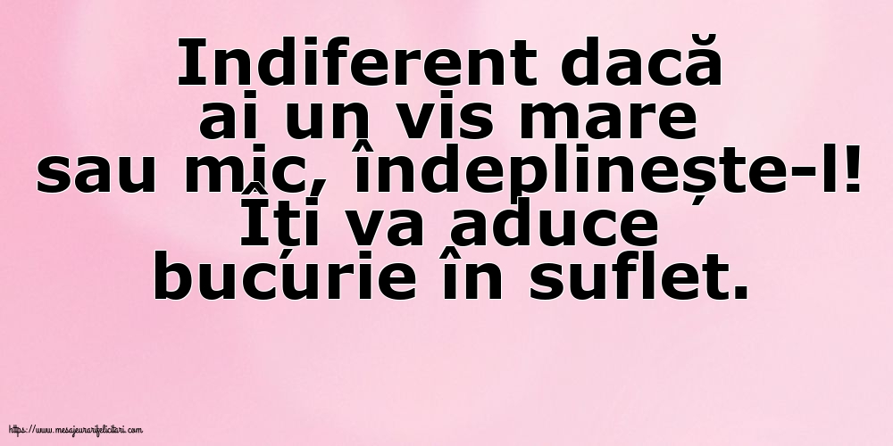 Indiferent dacă ai un vis mare sau mic, îndeplinește-l! Îți va aduce bucurie în suflet.
