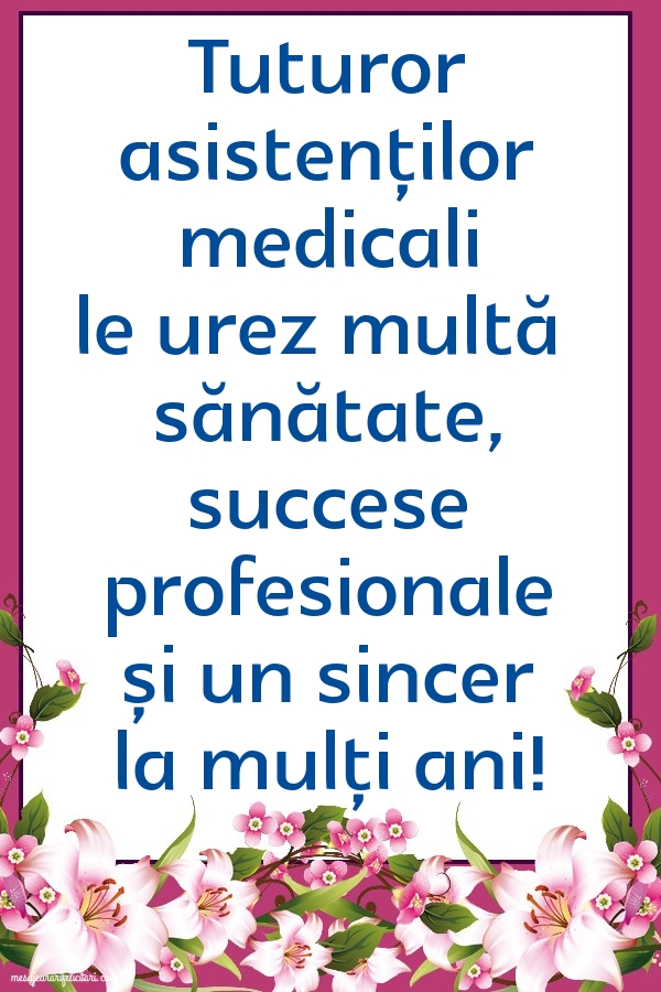 Tuturor asistenților medicali le urez multă sănătate, succese profesionale și un sincer la mulți ani!