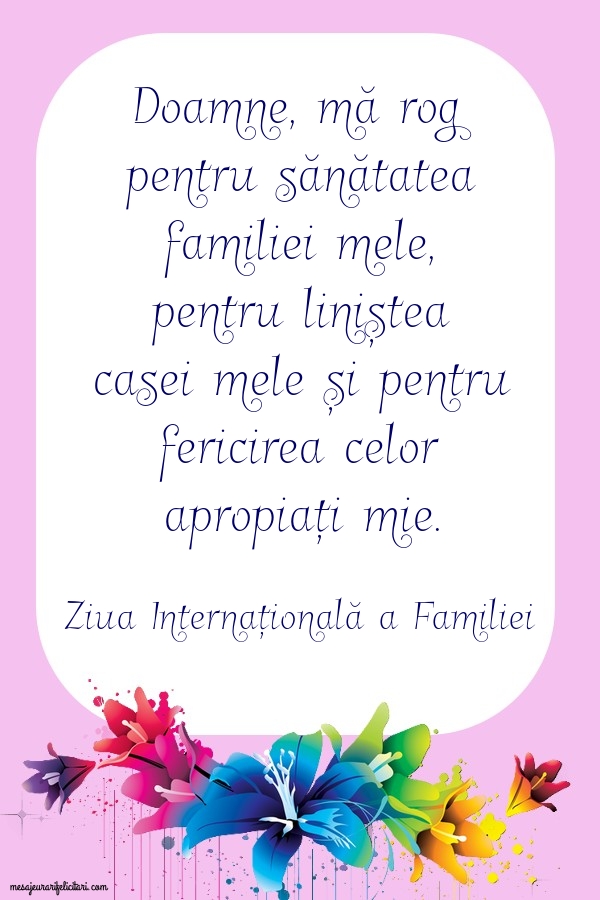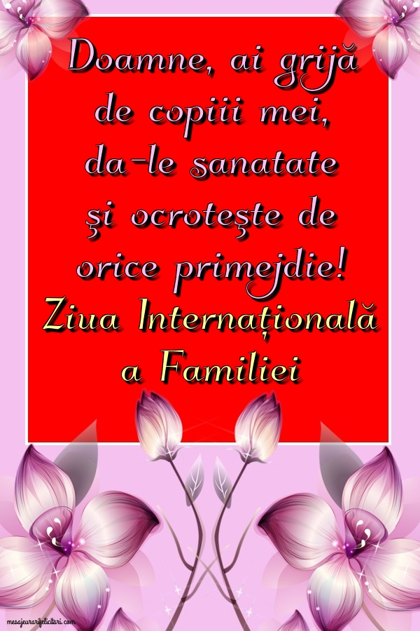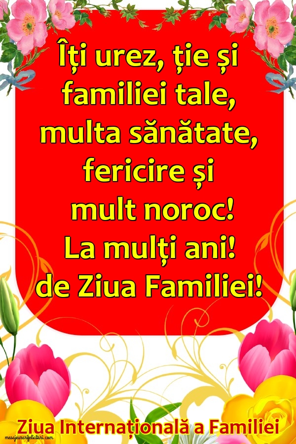 Ziua Internaţională a Familiei este sărbătorită anual în data de 15 Mai. Felicitari si imagini de Ziua Internațională a Familiei.