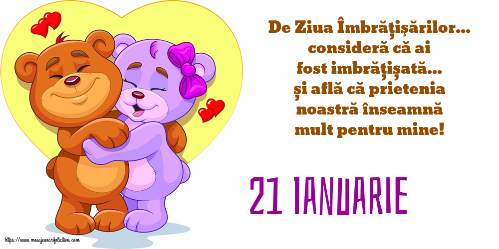 De Ziua Îmbrăţişărilor... consideră că ai fost imbrățișată... și află că prietenia noastră înseamnă mult pentru mine!
