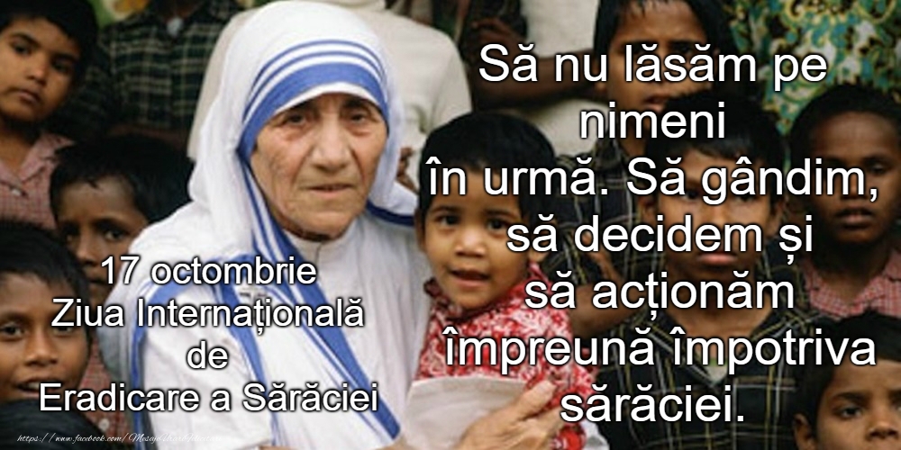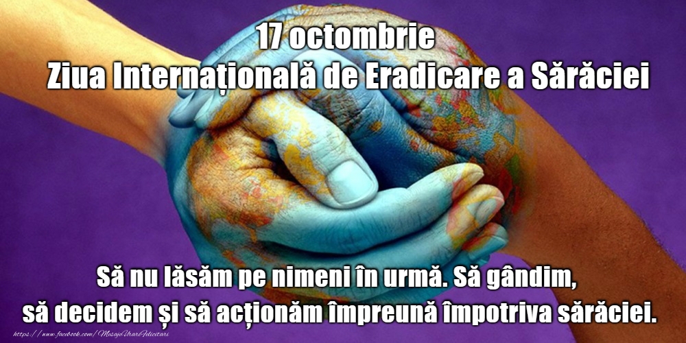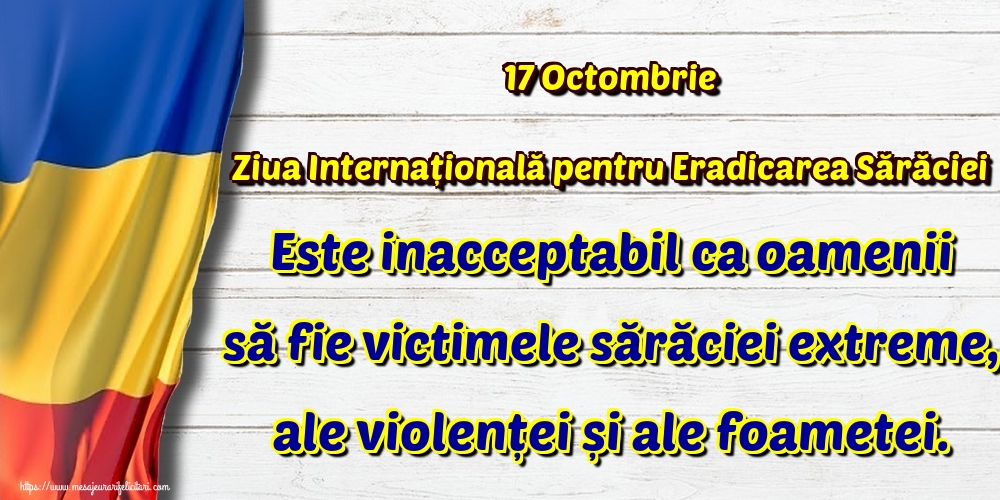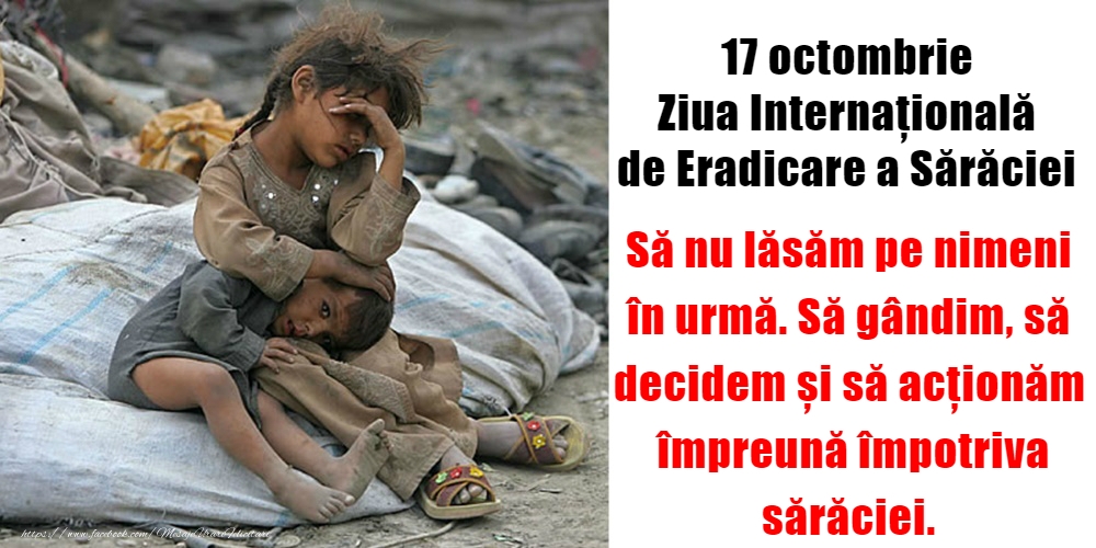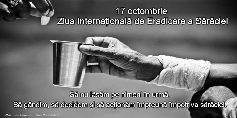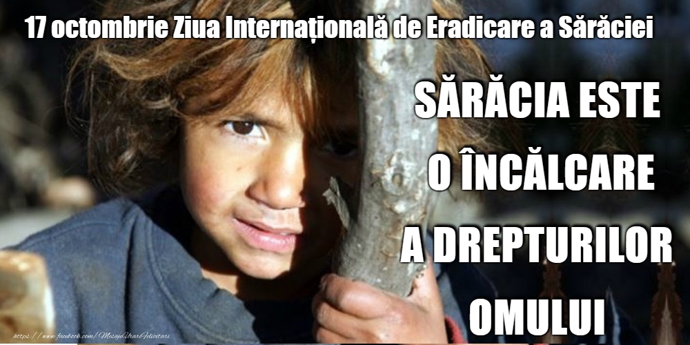 17 Octombrie Ziua Internațională pentru Eradicarea Sărăciei Este inacceptabil ca oamenii să fie victimele sărăciei extreme, ale violenței și ale foametei.