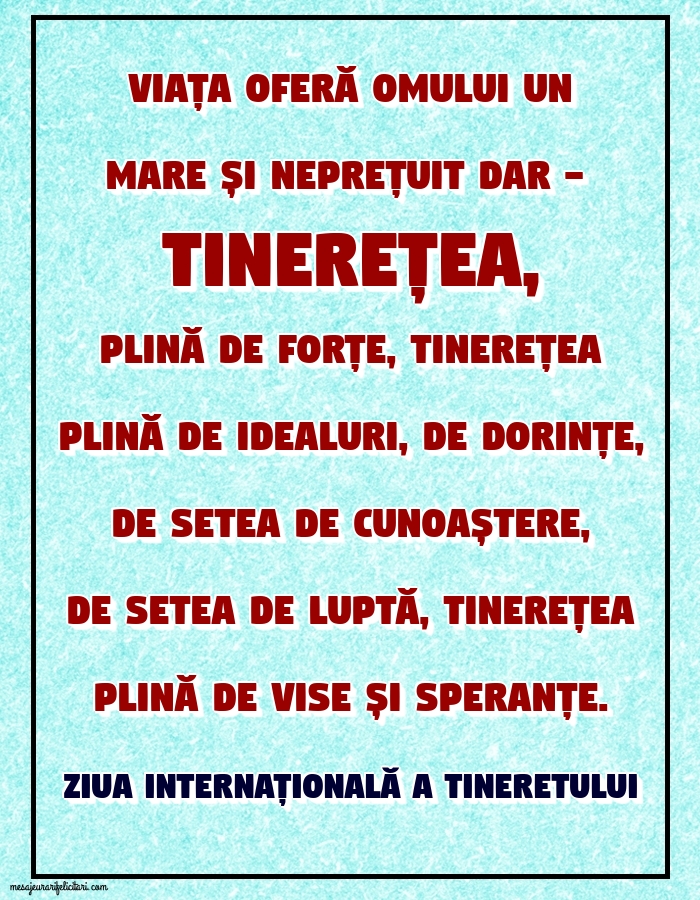 Felicitari si imagini de Ziua Internationala a Tineretului - 12 August.